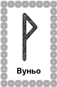 С рунами огня обещает заслуженные успехи во всем. Со знаками земли и воды предрекает жизнь в гармонии и достатке, когда ничто не омрачает радости. Символы воздуха рядом с Вуньо призывают обратить внимание на творчество, пробуждают в гадающем вдохновение.