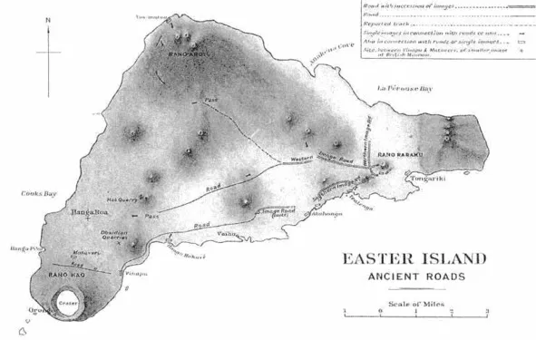 Остров Пасхи находится в тектонически активном районе. Но не только колебания земных недр сотрясают его основу. На острове непрерывно ощущается колебание почвы под ударами могучих волн океана. На берегу бухты Тонгарики, чуть южнее Рано-Рораку, был проведен простой эксперимент: на скальный выступ поставили кружку, до краев наполненную водой. Во время наката волн часть воды из кружки расплескивалась. Дрожание почвы на острове могло перемещать статуи вниз по склону под действием так называемого свайного эффекта. После раскопок археологов жители острова тотчас засыпали раскоп, так как боялись, что статуя уйдет в землю. На склонах Рано-Рораку действительно есть истуканы, которые «ушли» под пепел. Статуя с кораблем, которую раскапывали участники экспедиции Хейердала, погрузилась в почву почти на 80 сантиметров за те несколько лет, что разделяют время работы норвежских археологов и посещение Рано Рораку советскими геологами. Нет сомнения, что статуи на склонах Рано Рораку как внутреннего, так и внешнего, были перемещены вниз по склону и там опущены в заранее приготовленные ниши. Вполне вероятно, что статуи смещались по склону сами собой, под действием микросейсмических смещений почвы, за счет ее дрожания, пока не соскальзывали на уготованное им места [127].