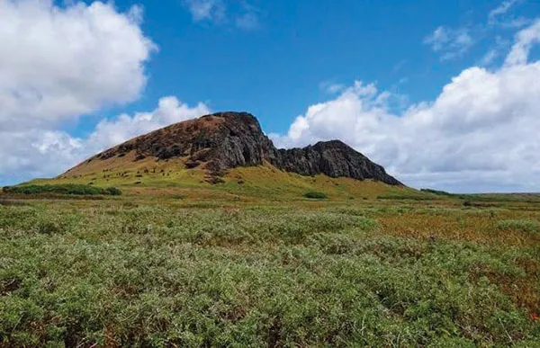 Склоны вулкана покрыты мягким травяным ковром, напоминающим альпийские луга, юго-восточный склон частично обрушен. Местные жители считают, что в течение почти пяти столетий, Рано Рараку использовался для разработки карьеров. Именно здесь добывали камень для большинства известных монолитных скульптур острова Пасхи, известных как моаи. Сегодня можно увидеть, как остатки целых 387 моаи разной степени завершенности буквально опоясывают кратер. Рано Рараку сегодня является частью Всемирного наследия национального парка Рапа Нуи.