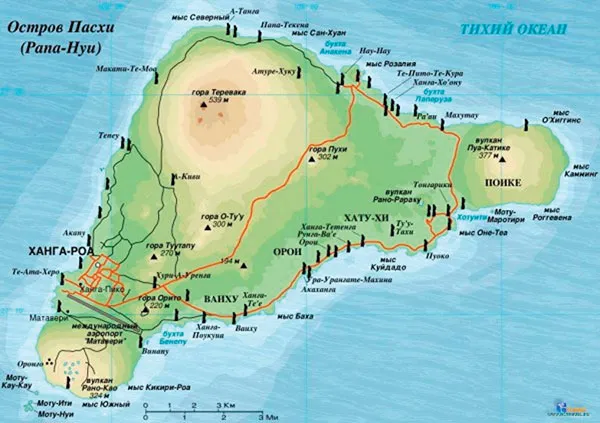 Статуи острова Пасхи разбросаны по всей его территории. Основная их часть находится в национальном парке Рапа-Нуи, который занимает половину острова [120].