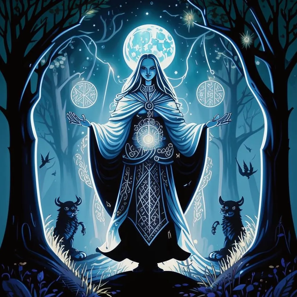 Олицетворяет глубину интуиции, внутреннее знание, связь с бессознательным и тайнами Вселенной. Она является второй картой Старших Арканов и символизирует важный этап на пути познания, связанный с постижением скрытых истин и глубинных аспектов души.