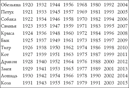 Обезьяна, Петух, Собака, Свинья, Крыса, Бык, Тигр, Кот, Дракон, Змея, Лошадь, Коза – эти животные символизируют знаки китайского гороскопа. Чтобы определить свой знак, загляните в таблицу: