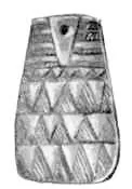 Среди останков каменного века, талисманы, в виде основы топора, были обнаружены с отверстием для подвески, (см. рис. 1) что видно на примере сланцевой плитки периода неолита, найденной в Португалии. Ее орнамент означает Божество в женском аспекте, как представлено первобытным человеком, который впервые воодушевил женское начало, отслеживая свое собственное происхождение и положение в племени по матери.