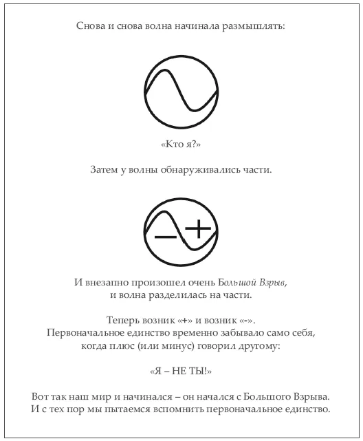 Поля лишены физической формы, так что в моем мифе о сотворении, когда поле задавалось вопросом «Кто я?», сила бесформия (пустота) становилась этим, а не тем. В тот момент формировались параллельные вселенные и случались разделения!