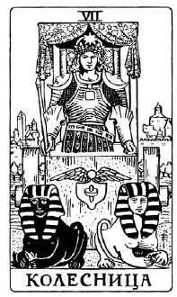 Седьмой Старший Аркан символизирует победителя, триумфатора, следующего к цели в своей колеснице. Для понимания образа карты можно провести параллель с такими всемирно известными античными военачальниками, как Цезарь и Александр Македонский. Карта символизирует движение к своим целям человека, для которого не существует никаких преград либо они незначительны для возницы. Победитель добивается всего сам, успех зависит от его силы и терпения.