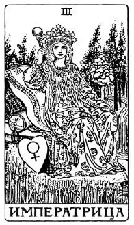 Третий Старший Аркан – Императрица, Великая Мать. Символизирует положение женщины и ее социальную роль в системе средневекового общества. Это жена Императора, мать его наследников, продолжательница рода, инструмент для политических союзов двух королевских семей. В истории нередко через институт брака заключались важные политические и военные союзы, формировались государства и правящие династии. Императрица – противоположность Жрицы. По Императрице идет все земное и житейское, что близко и дорого любому человеку.