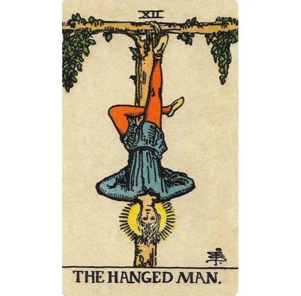 Общее значение. Символ жертвы, паузы и переосмысления. Карта приглашает посмотреть на ситуацию под другим углом, отказаться от привычных подходов и отпустить контроль, чтобы получить новые понимания.
