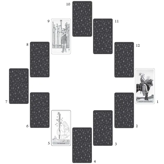 Девятый дом (мировоззрение, кругозор, расширение границ сознания) – 9 Жезлов.