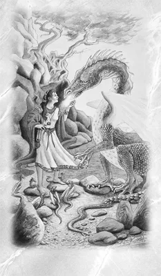 Высоко на горном пике два могущественных дракона держат между собой большой сверкающий хрустальный шар. Хотя природа и стихии драконов различны, они сбалансированы и находятся в идеальной гармонии друг с другом. Положительные и отрицательные энергии, которые они контролируют, ровным потоком вьются вокруг них. Маленькие драконы обозначают жизненные события, привлеченные этой гармонией, события, для разрешения которых необходимы баланс и душевное равновесие. Высокие горы – это ворота в духовную реальность. Карабкаться по ним нелегко, путешественник должен проявить усердие и решимость. Однако, взобравшись на вершину, мы наконец-то заново открываем наши духовные связи, а также находим гармонию и баланс, которых жаждала наша душа.