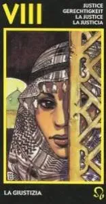 Обратите внимание, что в Таро Манара карта Правосудие (Справедливость) – VIII Аркан (как в Марсельском Таро).