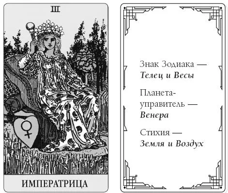 В самом общем смысле «Императрица» – это карта прибыли, денег, сбора урожая, сбора плодов своих трудов; карта удовольствия, заботы, роскоши и щедрости.