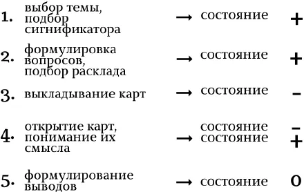 А потом очень важно этот импульс перевести в четкое понимание: в текст, в символ, в какую-то фразу. Сравнить с тем значением, которое вы знаете. То есть открыли карту, и от минуса к плюсу у нас есть такой ментальный скачок. И так мы разбираемся с каждым арканом, мерцая от минуса к плюсу, а затем с раскладом целиком.