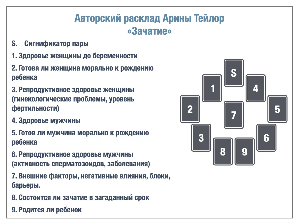 АВТОРСКИЙ РАСКЛАД АРИНЫ ТЕЙЛОР «ЗАЧАТИЕ».