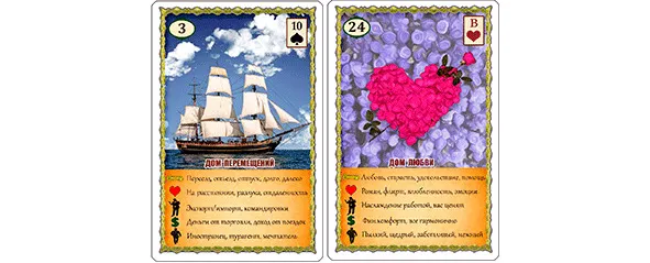 В сочетании с картами Дом и Лилии карта может показывать наличие мечты о создании семьи (рис.19) или тоски по своим родным. Потому что карта Лилии довольно часто обозначает семью, но с более эмоциональным оттенком, чем в карте Дом.
