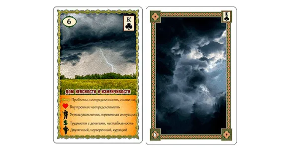 Исходя из подобного неуравновешенного состояния, появляется первое и главное значение карты Туча: «неясность и неопределённость». Эти значения касаются любой жизненной сферы, на которую вы раскладываете карты.