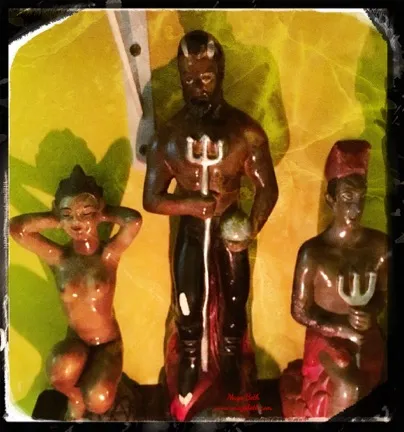 –Eshu Tronqueiras protects the corners of a Quimbanda temple.