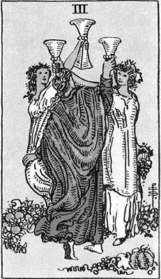 Рис. 2. Тройка кубков (Младший аркан) Таро Уэйта, 1909