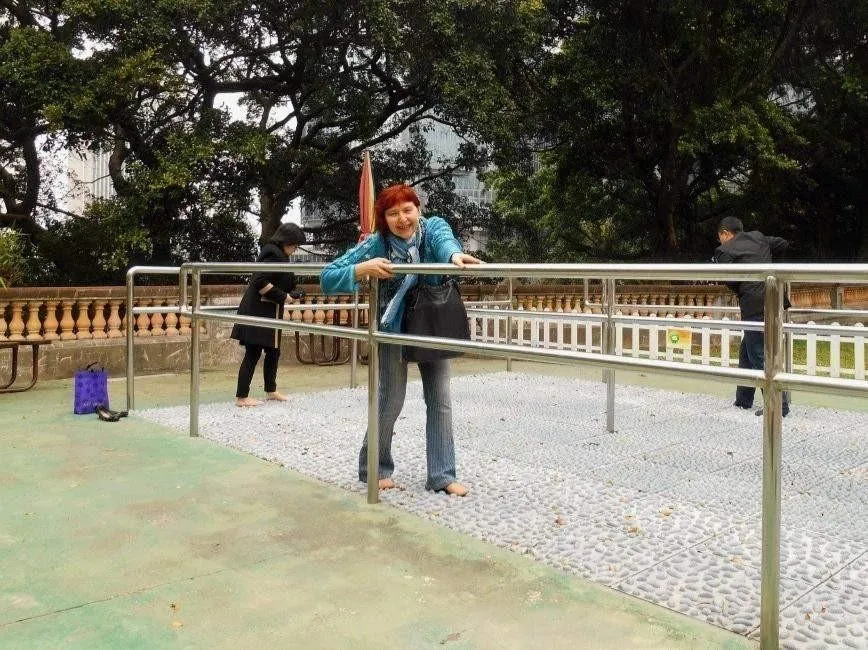 Гуляем по парку и набредаем на дорожку, вымощенную мелкой галькой в застывшем цементе. Краем уха слышу, как гид объясняет группе английских туристов, что это тропа мужества. Кое-кто из англичан пробует на неё встать, но дальше пары шагов дело не идёт. С удовлетворением отмечаю, что слаб туманный Альбион. Но и китайцы забавники: подумаешь, мужество, по камешкам пройтись! Да я сплю на гвоздях. Задний ум отключился, а передний не сообразил, что лежать – это одно, а ходить – совсем другое. Босиком я хожу только по песчаному пляжу, когда песок мелкий, как пудра, но тут меня словно бес в ребро толкнул. Сбрасываю туфли, ступаю на дорожку, делаю шаг и понимаю, что погорячилась. Секрет гвоздей в том, что они расположены на определённом расстоянии и не могут поранить. Видимо, камешки тоже располагали на определённом расстоянии, потому что пройтись по этой тропе было совсем не то, что прогуляться по галечному пляжу.
