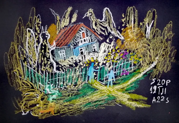 – Ты будешь жить в моем кабинете на первом этаже, а я расположусь в мансарде, – сказал он, исчезая за кустом отцветшего жасмина. Обрывая мелкие ягоды одичавшего крыжовника, я неторопливо вошел в дом; половицы подозрительно заскрипели под ногами. В комнате, которую Джи назвал кабинетом, стоял старенький столик с настольной лампой и две доисторические кровати на пружинах, покрытые шерстяными одеялами; на полках стояли старые, потрепанные томики книг, а на стене ярко выделялись странные геометрические знаки. Я сразу же сел за стол, смахнув с него пыль, и стал делать путевые заметки. Среди прочих моих наблюдений я записал, что идеи, которые проводит Джи, не могут жить в мире обычных людей, никогда не задумывавшихся о великом Пути освобождения. Окончив записи, я прошел на кухню и увидел там Джи, сидящего на грубо сколоченном табурете с кружкой чая; его голову украшало соломенное сомбреро, а глаза выражали неприступную строгость испанского гранда, остановившегося в избушке лесника. Увидев меня, он смягчил взгляд и, стал уютно-добродушным, милым дачником, который произнес: