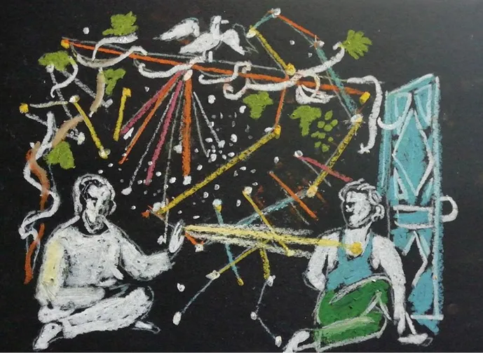 Я был огорчен тем, что Григорий, бывший охотник за просветлением, провалился в мирское болото, сойдя с Пути, который был опасен для молодой жены. Следующим искателем просветления был художник Ион. . Много лет он гонялся за собственным отражением, изучая эзотерические трактаты и выплескивая найденные в них откровения в абстрактные картины. Мы с Джи отправились к нему вечером следующего дня. Его жилище стояло на окраине города среди закоулков, по которым днем бродили куры и надутые индюки, а ночью раздавался лай собак. В небольшом уютном дворике темнел сруб колодца с журавлём и росло несколько лоз вьющегося черного винограда.