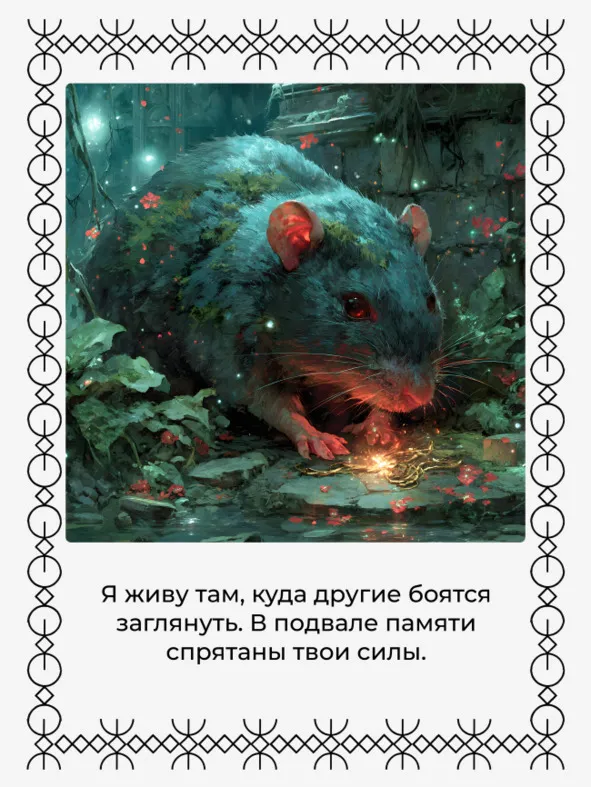 В славянских поверьях крыса – существо, связанное с подземными пространствами, тайнами рода и границей между материальным и теневым. Она символизирует выживание, скрытую силу, а также те аспекты личности, которые обычно отвергаются.