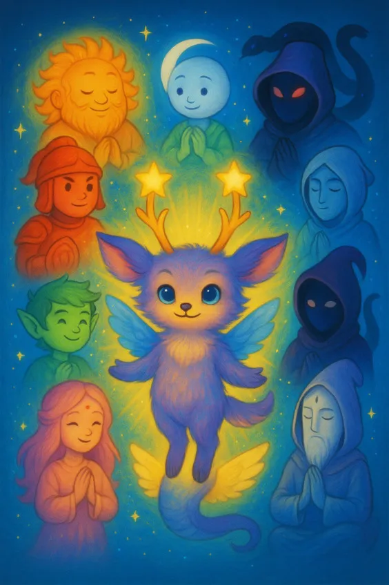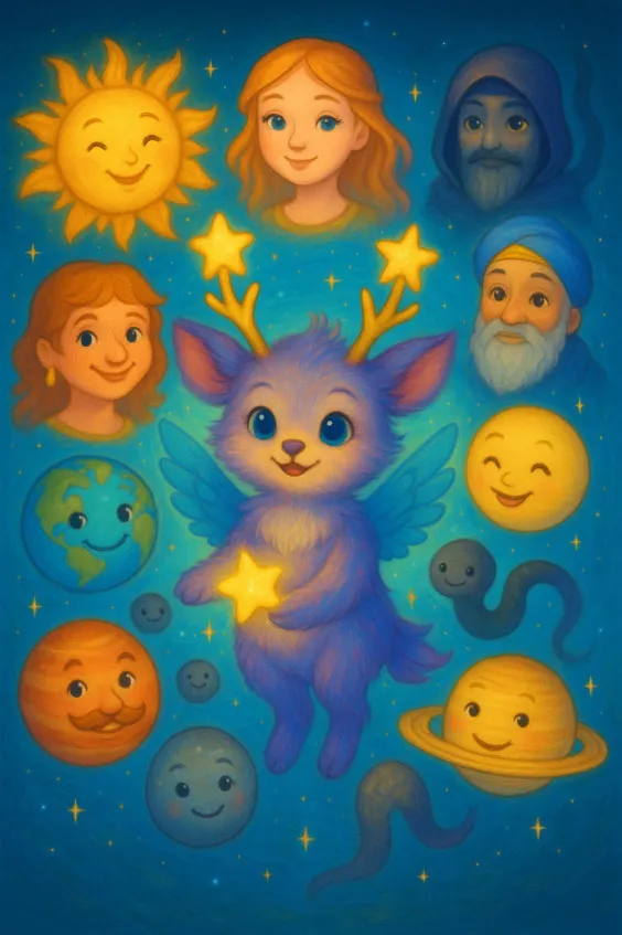 © Юлия Смирнова, 2025 ISBN 978-5-0067-3743-3 Создано в интеллектуальной издательской системе Ridero «Привет, я Твиша – девочка Света! Пошли в Звёздное Путешествие!». Твиша знакомит с планетами Джойтиш. Привет, чудо-дитя! Меня зовут Твиша. Я живу среди звёзд и летаю по небесным тропинкам. Там, где ты видишь сияние на небе – это мои друзья, волшебные светила, которых зовут планетами Джойтиш. Их девять, и у каждой – своя тайна, своя сила и своя песенка. Хочешь познакомиться? Лови мой лучик – и полетели! Знакомься – Сурья (Солнце). Сурья – это светило всех светил. Он – как папа небу. Он учит быть смелым, честным и сияющим. Если ты говоришь правду, держишь слово, защищаешь слабых – Сурья улыбается тебе! Цвет Сурьи: золотистый, как мёд Мантра для детей: «Ом Сурья Намаха» – это значит: Солнце, я приветствую тебя. Игрушка Сурьи: львёнок с короной Что даёт Сурья: силу духа, здоровье, свет в глазах Утренняя игра: Встань, подними руки вверх и скажи: «Солнышко, гори во мне, Светом будь в каждом дне!»