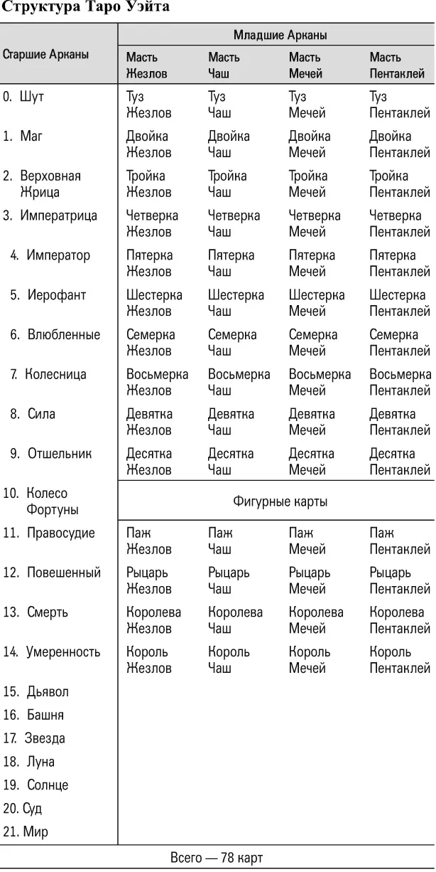 Обычно прямое значение карты и перевернутое значение противоположны. Они организованы по принципу антонимов в языке. Например, хороший – плохой, большой – маленький, высокий – низкий. Сейчас сложно с уверенностью утверждать, каков был изначальный замысел авторов XVII – ХХ веков, но если вы внимательно прочтете современные книги по их колодам, вы заметите, что это правило не всегда соблюдается. Иногда у перевернутой карты возникает совершенно неожиданное значение, которое с трудом можно связать с основным значением прямого Аркана. Возможно, это искажения времени. Каждый толкователь непременно вносит в значение что-то свое, и со временем карты начинают обрастать такими толкованиями, которые авторы колоды вовсе не имели в виду. Ученика это запутывает, хотя, если по правде, только в начале. Скорее, это нарушает симметрию системы, но никак не влияет на ее работоспособность.
