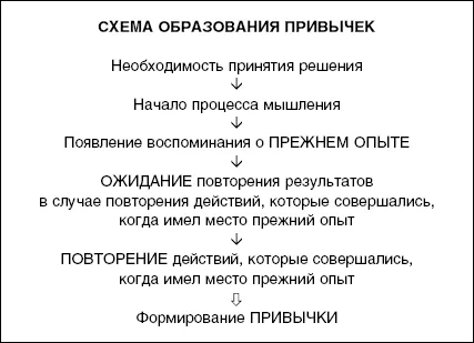 Итак, по привычке ожидая, что прежний опыт может быть повторен, человек, накапливая опыт, специально формирует из него стереотипы, чтобы затем использовать их для повторения прежнего опыта, а в результате такого повторения как раз и образуются привычки. А отсюда следует очень важный вывод: