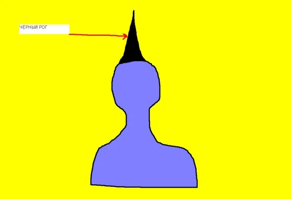 Над твоей головой Мы чётко видим нечто наподобие чёрного рога (рис. 8). На самом деле это, конечно же, не рог, а просто дисбаланс энергии. Нарушена работа Сахасрара-чакры. От области манипуры со спины находится множество присосок, которые подпитывают твоих родственников.