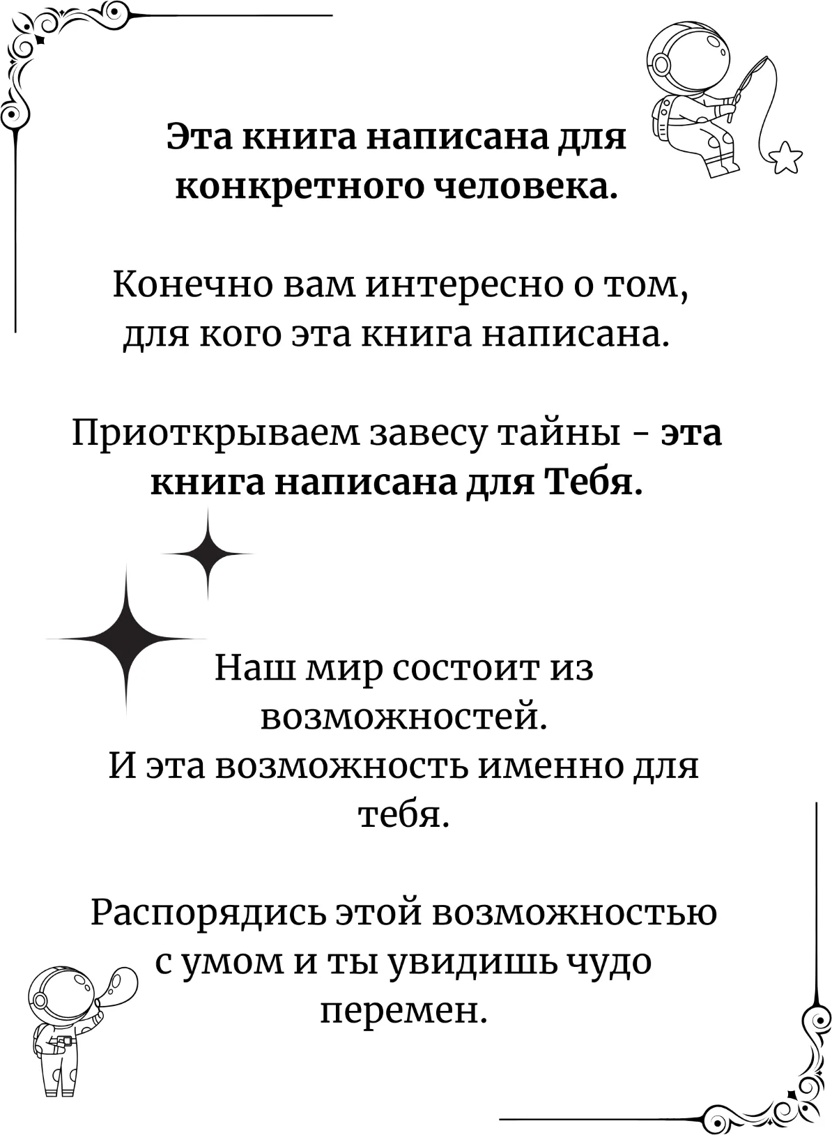 Можно взять и попробовать, чтобы убедиться, а можно отмахнуться, пройти мимо и упустить возможность. Банальности, конечно, писать не хотелось, но как же без этого: эта книга попала к вам в руки (скорее всего, в телефон или другой гаджет) не просто так, это возможность лично вам.