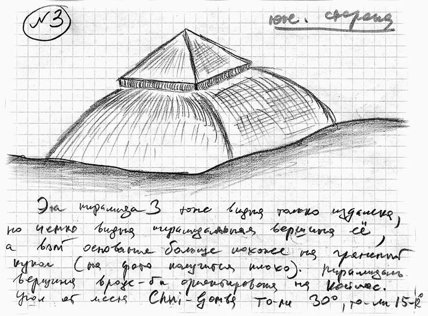 Закончив зарисовки и фотографирование, я продолжил рассматривать вторую пирамидальную гору, которая просматривалась достаточно хорошо. Она была очень похожа на ступенчатые пирамиды, которые я не раз видел в Латинской Америке. Но в сравнении с ними эта гора была несравненно больше и по размерам, видимо, превосходила даже великую пирамиду Хеопса в Египте.