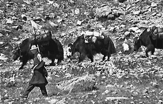 Мы, выстроившись гуськом, шли с легкими рюкзаками. Яки вместе с погонщиками шли рядом.