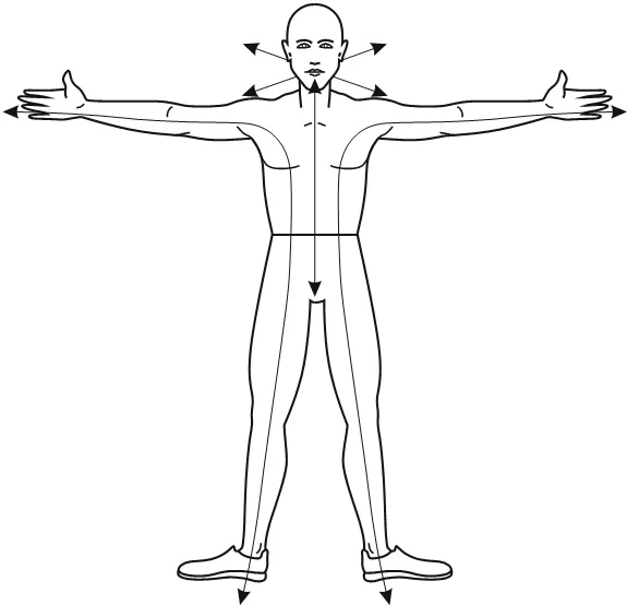 Рис. 1б. При разрядке энергия движется изнутри наружу через рот, ноги, руки и гениталии