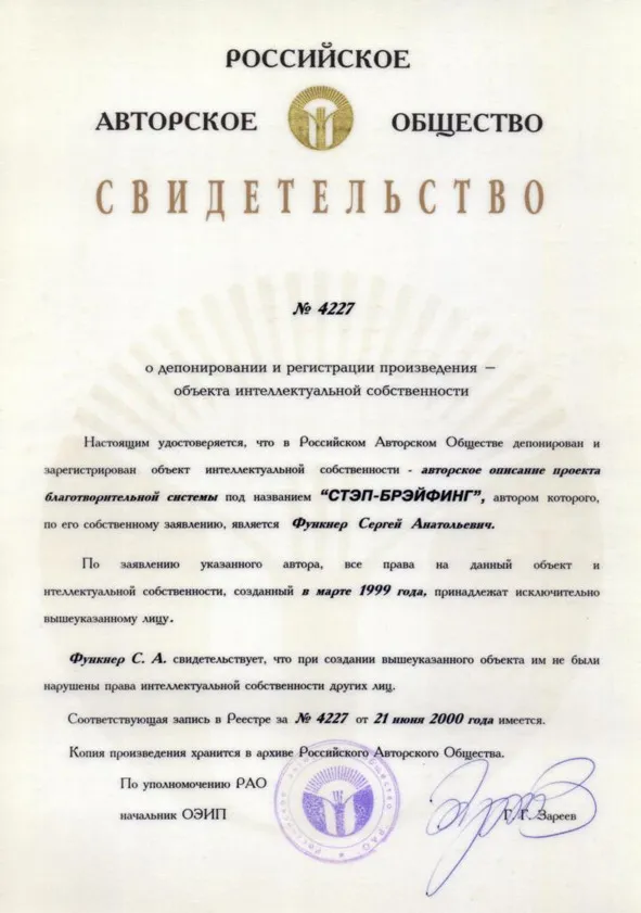 С 1999 года и по сей день Брэйфбизнес остаётся ЕДИНСТВЕННЫМ в мире ВИДОМ БИЗНЕСА, обладающим официально защищённым АВТОРСКИМ ПРАВОМ!