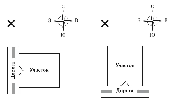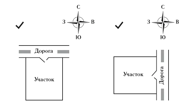 Также обращайте внимание на то, с какого направления света проходит подъездная дорога к участку. Дорога со стороны севера или востока благоприятна (рис. 1), дорога со стороны юга или запада неблагоприятна (рис. 2).