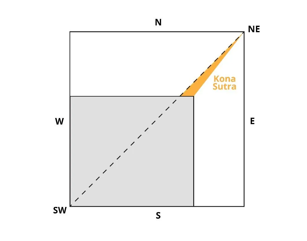 The area that remains between the northeast corner of the plot and the northeast corner of the house is called Kona Sutra.