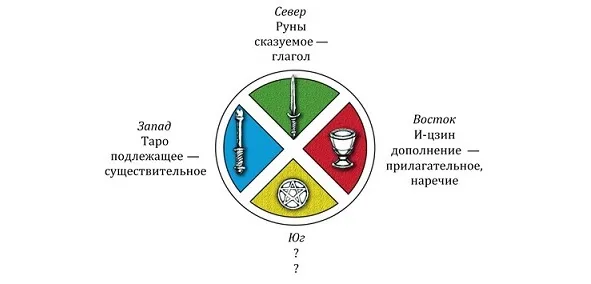 Среди мантических систем, Таро можно уподобить имени существительному, которое описывает объект и субъект. И-цзин описывает состояния и чувства, а Руны выступают в роли глагола и указывают на способ действия.