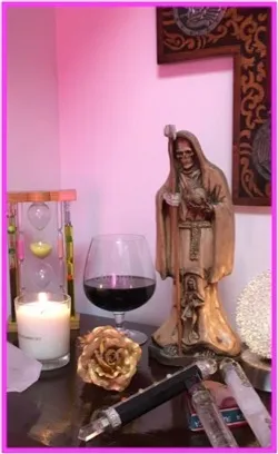 Выбери место для алтаря. Поставь подставку, накрой ее скатертью и расположи образ Санта Муэрте. Трижды напиши имя больного на молитве или на эстампе, затем оберни лентой таким образом, чтобы она полностью покрывала бумагу. Положи сверток в стакан с алкоголем и поставь его рядом с фигурой Санта Муэрте. Зажги свечу и трижды помолись Санте, каждый раз повторяя имя больного. Попроси Ее избавить страдающего от зависимости. Оставь догорать свечу.