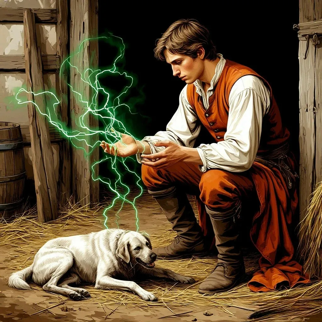 На охоте кабан подрал одного из борзых. Пса домой принесли, надеясь, что лекарь зашьёт рану, оправится животина. Но тот лишь руками развёл и сказал, что милосерднее всего будет его добить, чтоб не мучился. Но, когда старший брат решил сделать это, Георгий его остановил, и попросил дать ему время. Потом он выгнал всех из хлева и сел на пол возле умирающего пса. Его решили не трогать, итак, странный, пусть сидит, если хочется ему. И он сидел, до утра, водя руками над рваным собачьим боком и что-то шептал.
