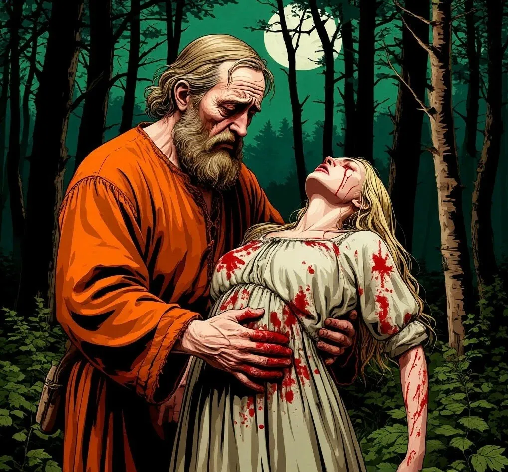 Вдруг, девица вздрогнула и громко вздохнула. А потом, спустя полчаса, она уже стояла на ногах, растерянная, розовощёкая и полная сил. А старый кожевник плакал и целовал руки спасителю.