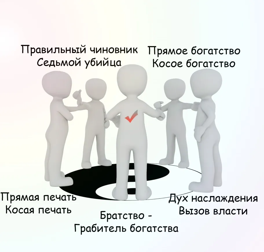 В данном разделе мы подробно рассмотрим каждое из десяти божеств без соединений с конкретной стихией или Небесным стволом. Универсальные описания нужны в тех случаях, когда имеем дело с разными взаимодействиями между Божествами, как на уровне Небесных стволов, так и на уровне Земных ветвей. Например, слияние, столкновения, разрушения, вреда или преодоления.