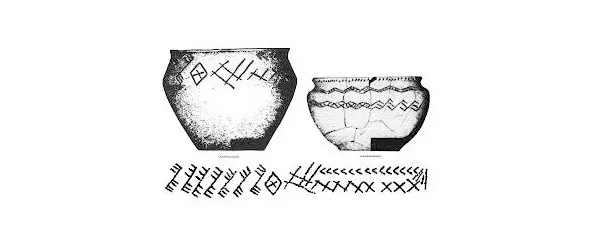 знаменитый сосуд срубной АК с буквой (или же слогом)