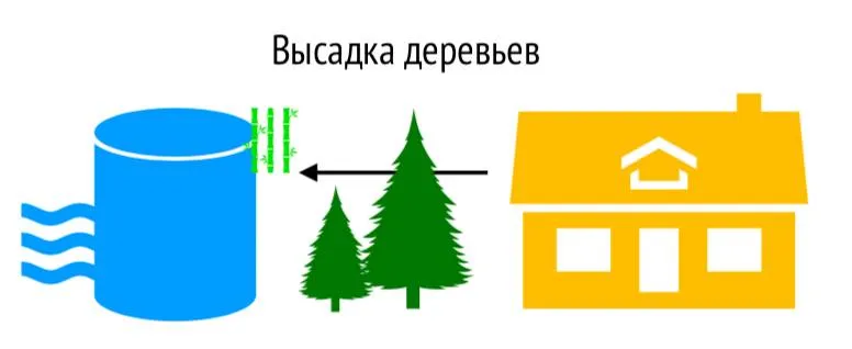 Если ваш дом находится на Севере (обращен на Юг), то считается, что это дом Водной стихии. Если здание напротив вашего дома круглое и преимущественно желтого цвета, означающее элемент Земли, то энергия, посылаемая на ваш путь, представляет собой разрушительную энергию. Он должен быть нейтрализован энергией элемента Дерева. Посадка дерева или выращивание живой изгороди будет бороться с этим.