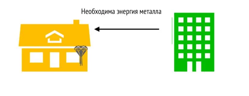 Дом, который находится на Западе (лицом на Восток) является домом элемента металл, здания напротив вашего дома треугольной формы и преимущественно красного цвета, обозначающее стихию Огонь , заставляет направляемую на вас энергию превращаться в разрушительную энергию. Нейтрализуйте с помощью энергии элемента Вода, построив небольшой фонтан между зданием и вашим домом.