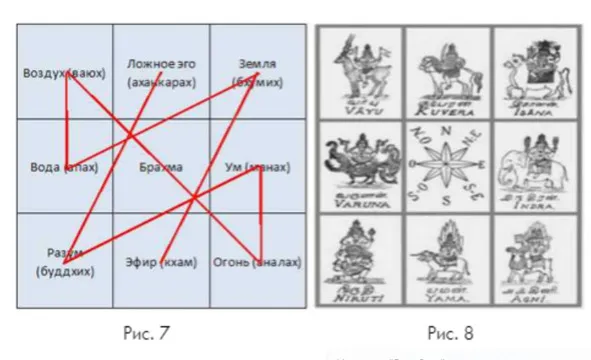 Я поместил их в матрицу квадрата Сатурна и наложил сигилу. И вот что получил. Рис. 7. И сравнил их с рисунком из Васту шастры. Рис. 8.