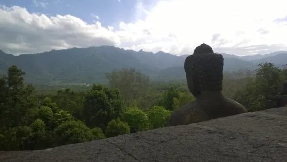 Рисунок 3. Статуя Будды в храме Боробудур, Магелан, Центральная Ява, Индонезия, 2016, цифровое фото, Евгений Тимофеев.