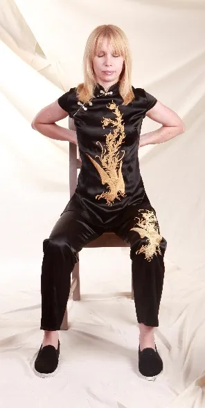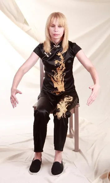 Из исходного положения, сидя с прямой спиной, мягко опускаем руки на бедра, ладони вверх. На вдохе руки отводятся сначала назад, а затем плавным движением вперед – обхватив колени спереди (ноги смыкаются), глаза открыты, взгляд по диагонали вверх, делается выдох с очень тихим и протяжным звуком «ву-у-у», как будто мы задуваем свечу, спина при этом округляется, живот втягивается внутрь. Хорошо, если получится представить, что вместе со звуком/выдохом выдуваются наши страхи, почки становятся свежими, чистыми и сильными.