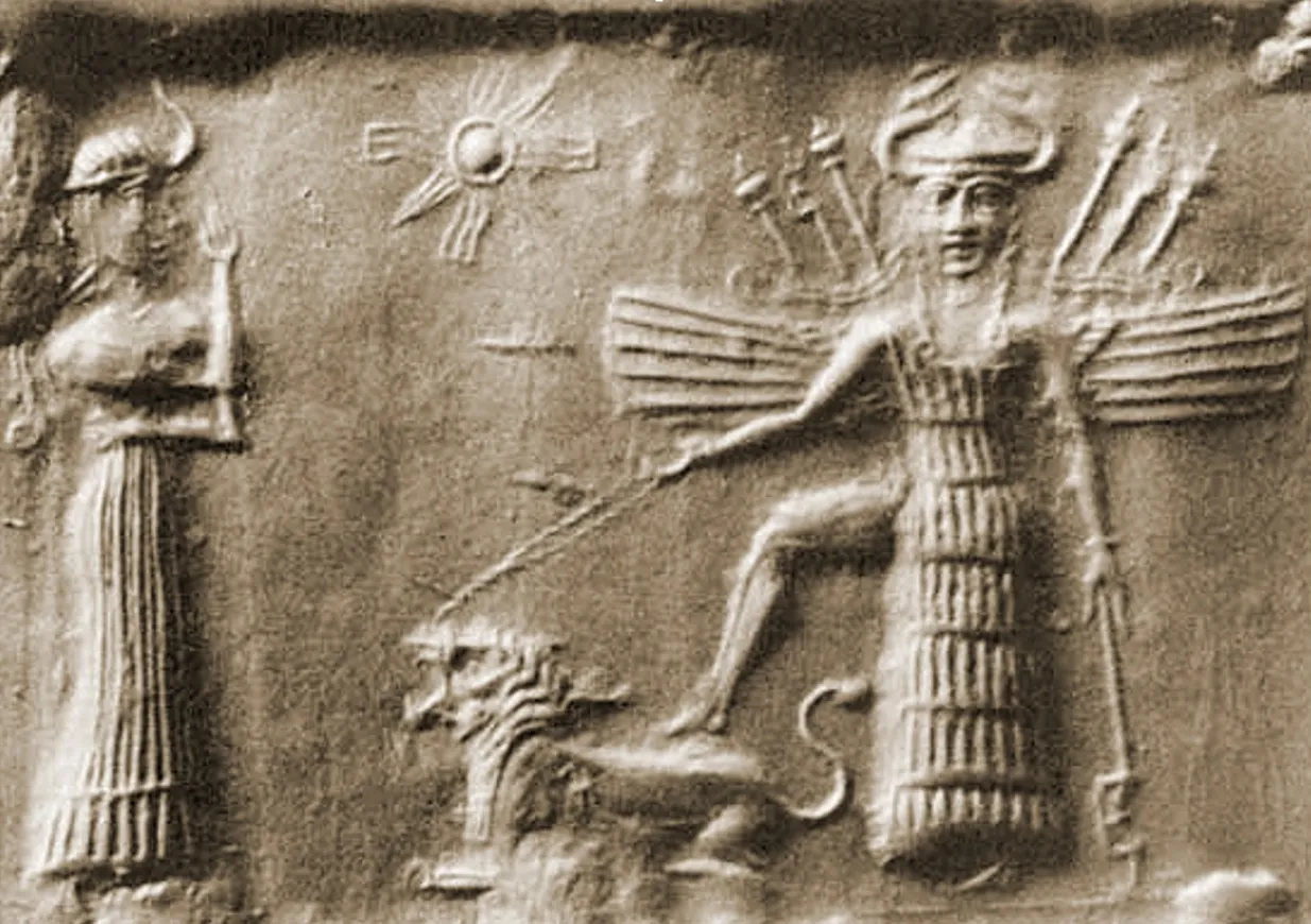 Рис. 8. Инанна, попирающая льва. Цилиндрическая печать. 2334-2154 гг до Р.Х.