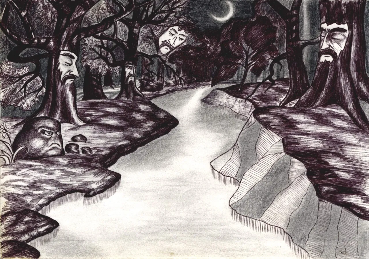 Я плыл по тихой извилистой речке, по берегам которой непроглядной стеной высились мохнатые лапы деревьев. Их желтые немигающие глаза таращились из мрака, длинные когти тянулись к самой воде, пытаясь преградить путь. По берегу иногда двигались чьи-то корявые тени, наблюдавшие за тем, что происходит на реке. И только глупые ивы плакали вслед уплывавшему зонтику. А потом все исчезло – глаза из чащи куда-то делись, и когти обернулись молодыми листьями папоротника, растущими на том и другом берегу. Звезды показались на небе, и все говорило о том, что в эту ночь должно происходить что-то очевидное, но, как водится, невероятное.
