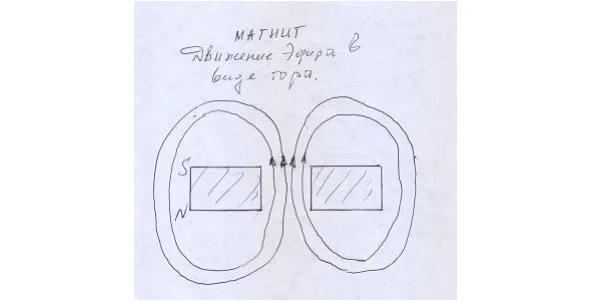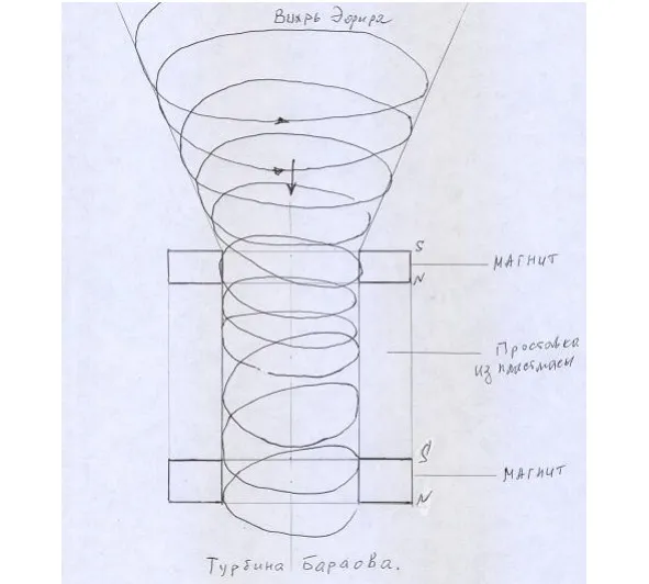 Турбина вращается Эфирным вихрем. Если у одного магнита вихрь имеет форму тора: